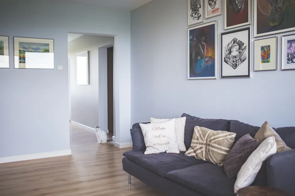 Холодный серый оттенок. На фото автором применены фильтры, поэтому он выглядит чуть более голубым. Универсален для любой комнаты.