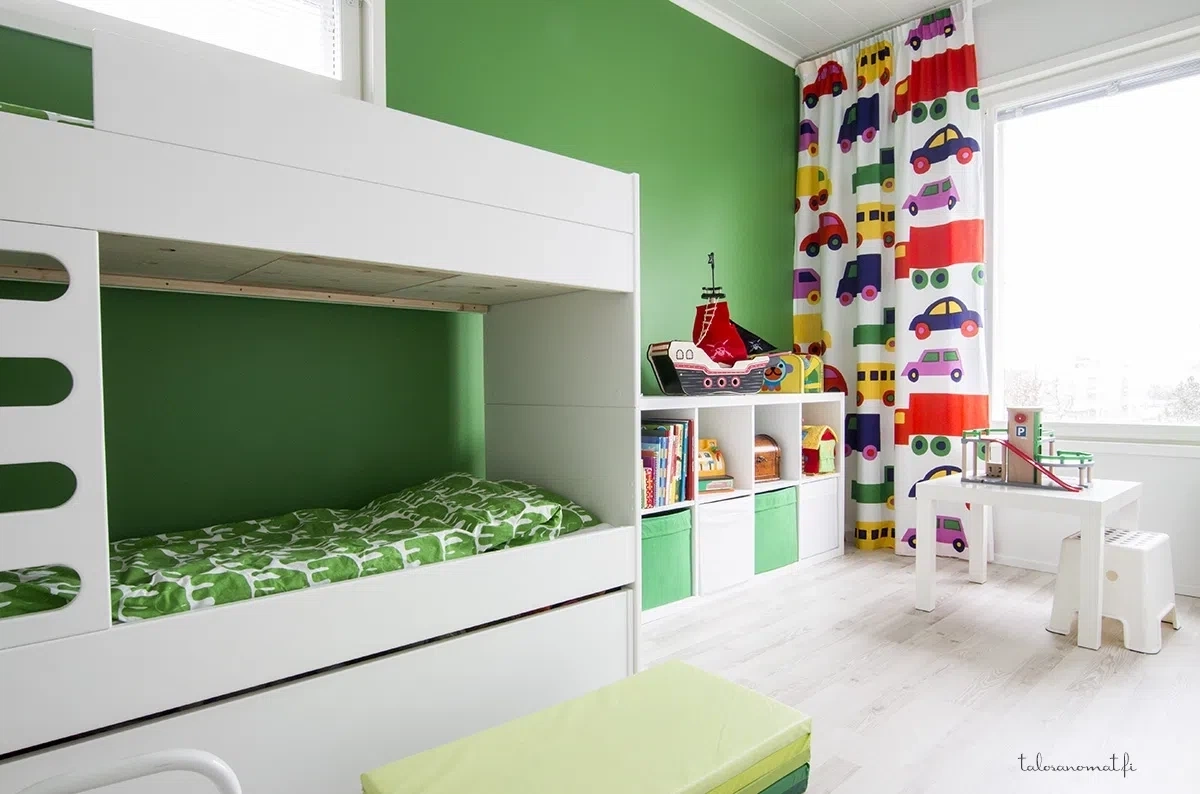Очень насыщенный зеленый оттенок. Не стоит использовать в качестве основного цвета в комнате.